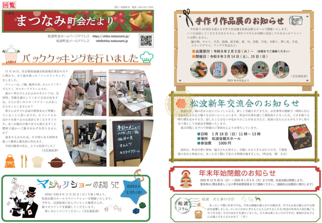 2025 年 12 月 28 日(日)~ 2026 年 1 月 5 日(月)までの間、松波会館は閉館します。緊急時は、関会長若しくは小野寺総務部長までご連絡ください。(連絡先は会館前に掲示します)