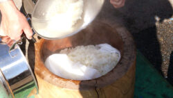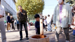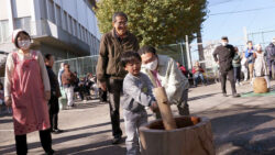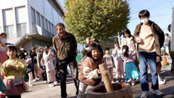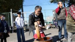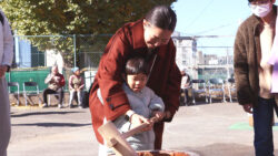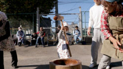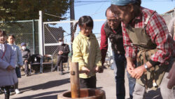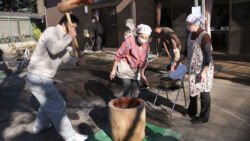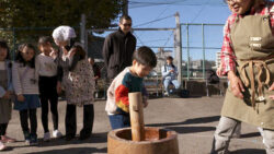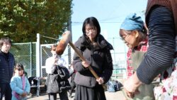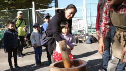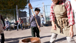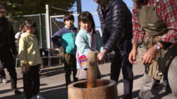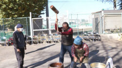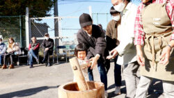 年末恒例のもちつき大会で、 元気におもちをついて、 つきたてのお餅を是非味わってくだ