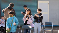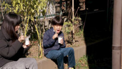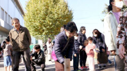 9 ~ 11 月、市内一円で「千葉国際芸術祭 2025」の展示がありました。40 ほどの作品のうち、松波では 3 丁目で 1 か所会場があったのでのぞいてみました。たまたま居合わせた作者に聞くと、陶芸作品とその粘土の産地の写真でした。陶器を形作った土のふるさとを思い起こしたいということでしょうか。やわらかな作者の意図を感じました。( 竹 )