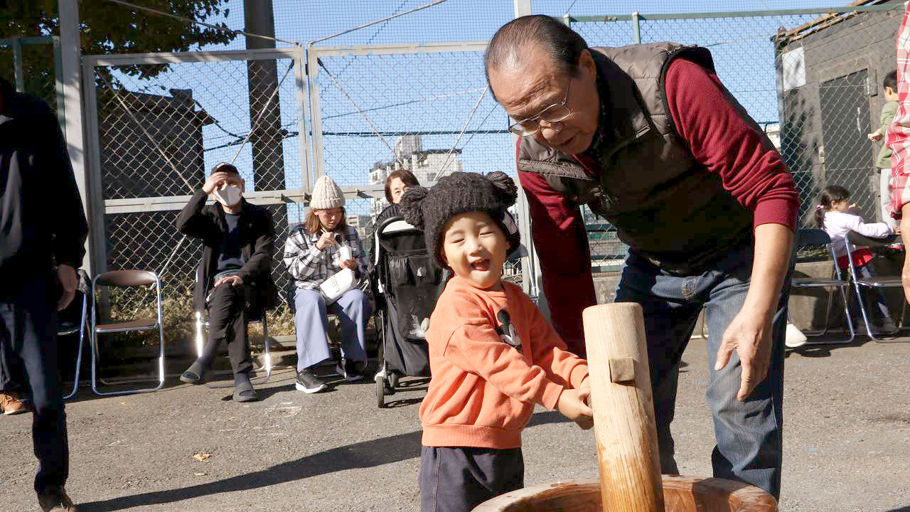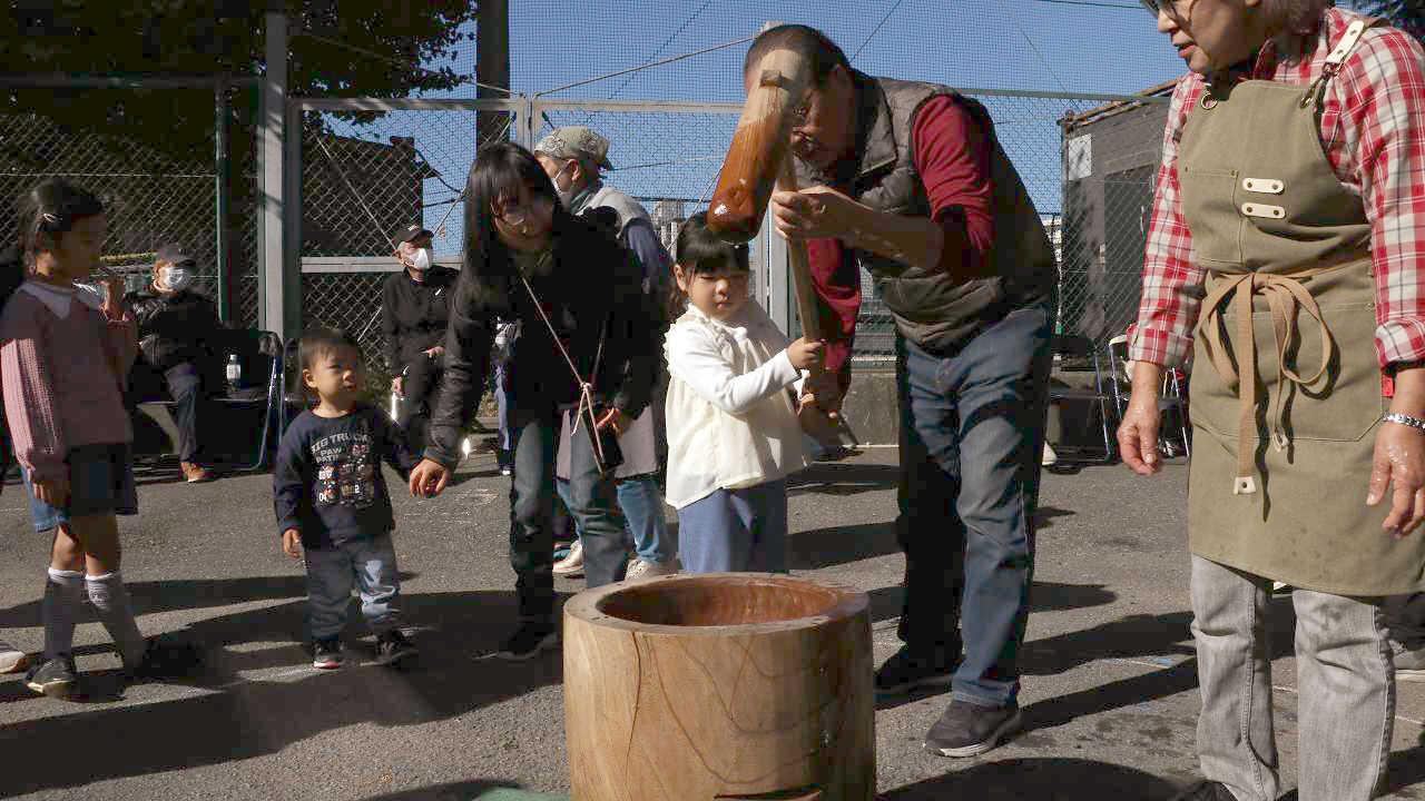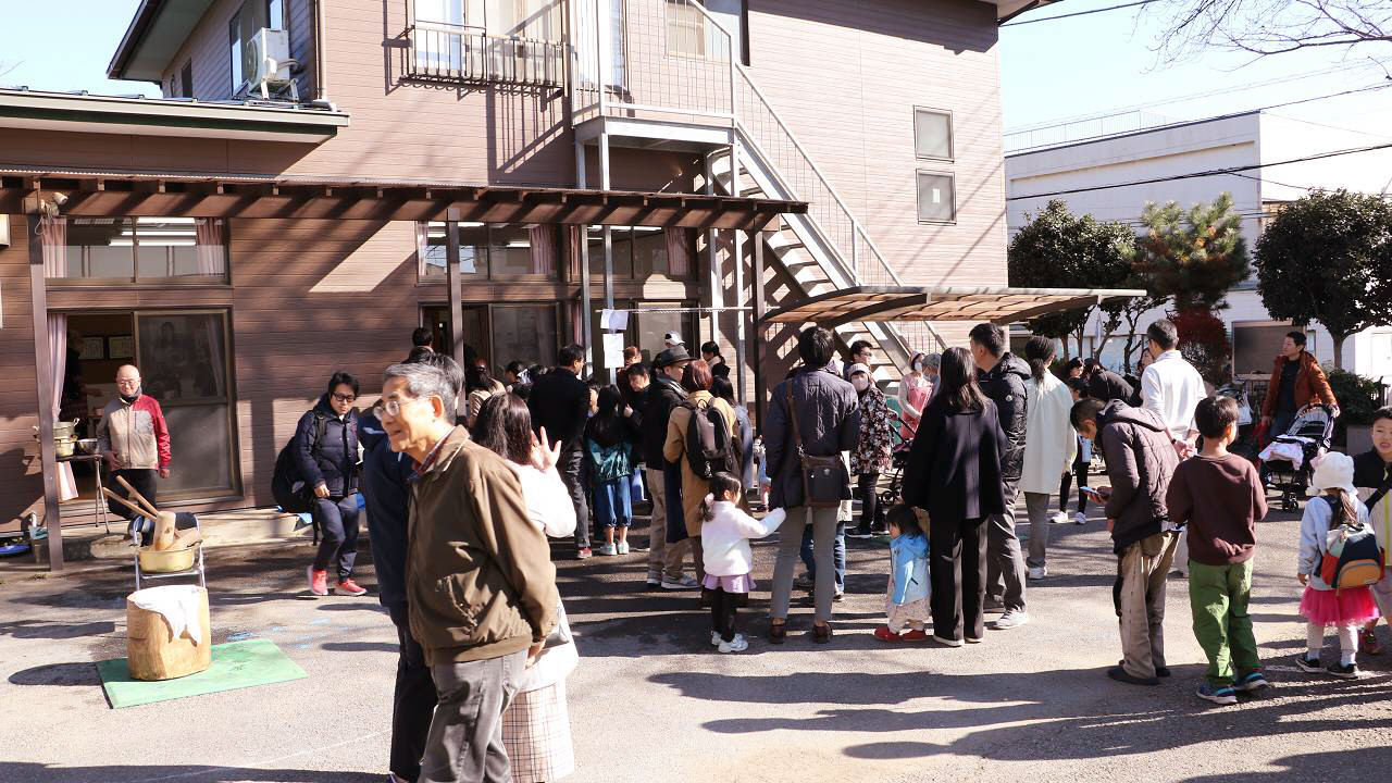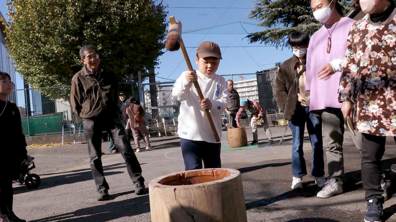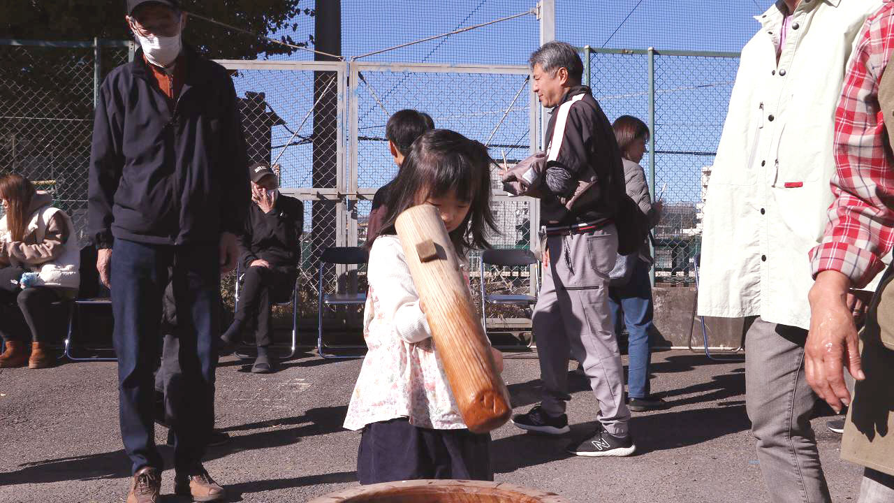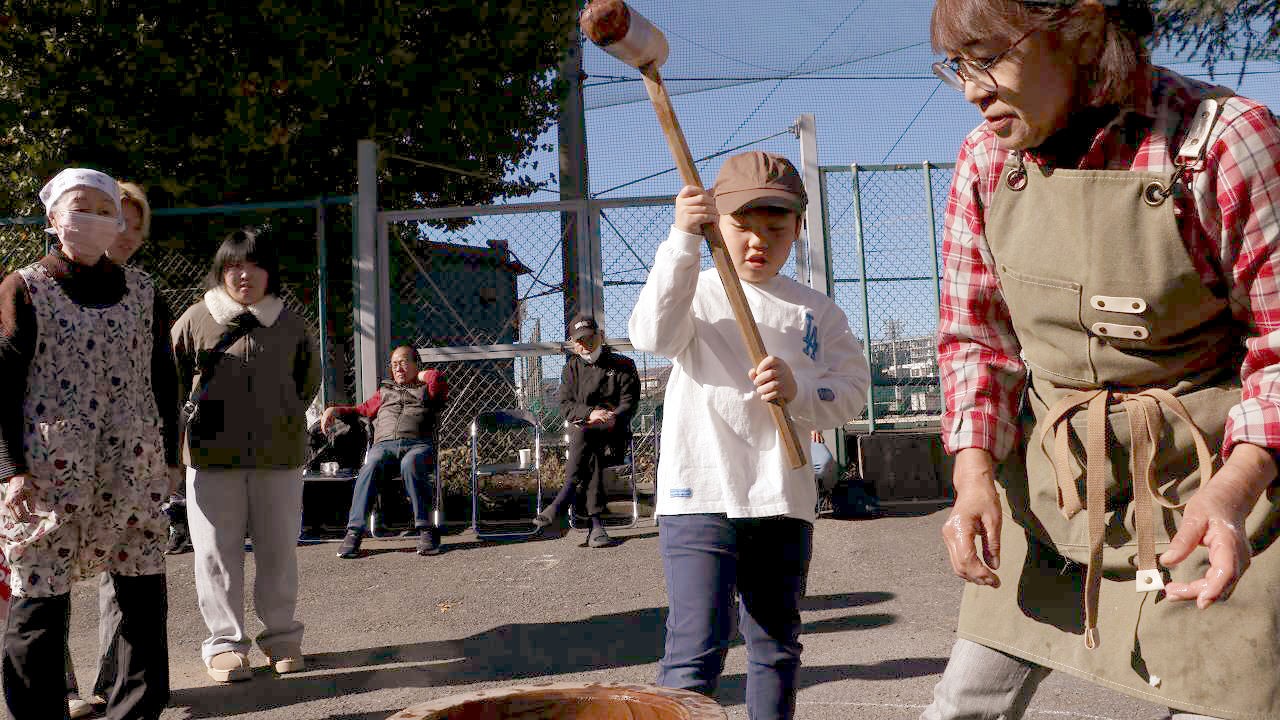 年末恒例のもちつき大会で、 元気におもちをついて、 つきたてのお餅を是非味わってくだ