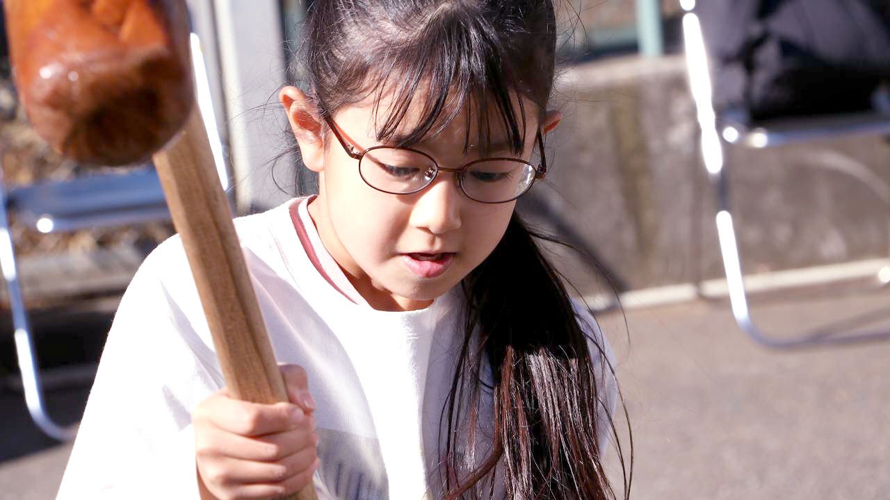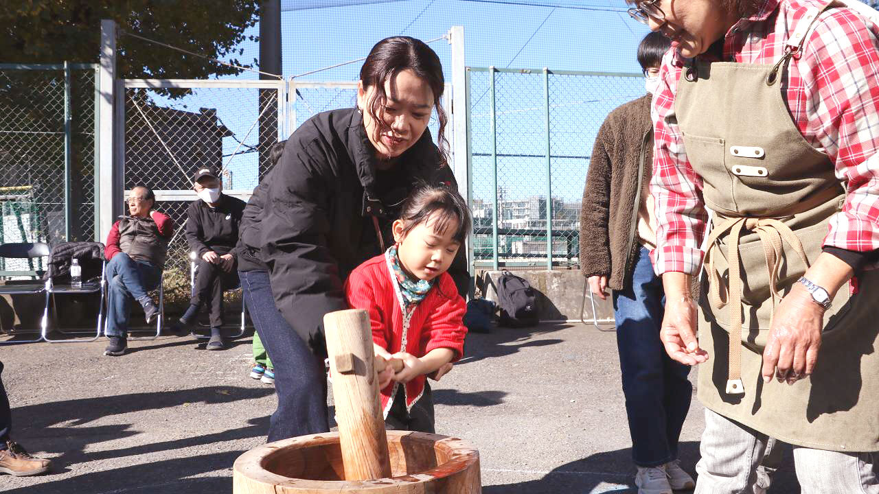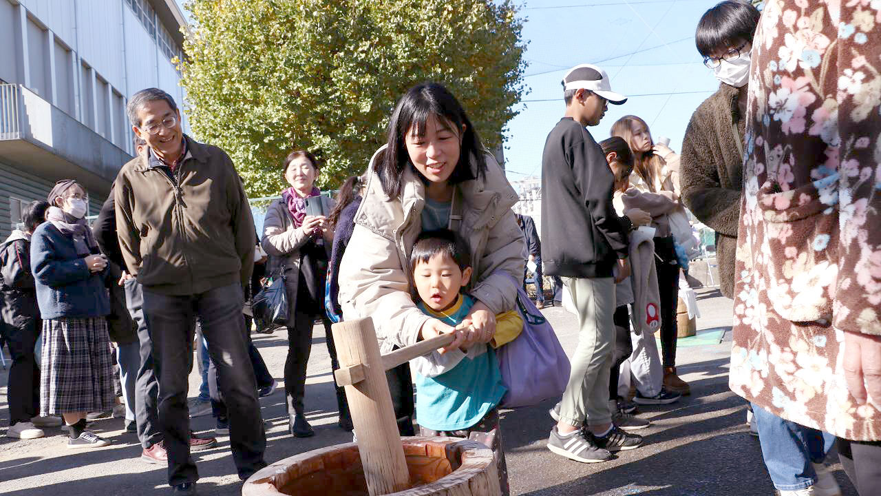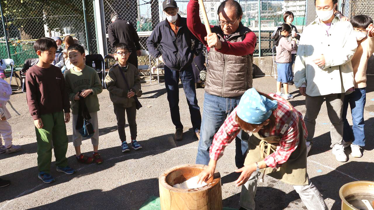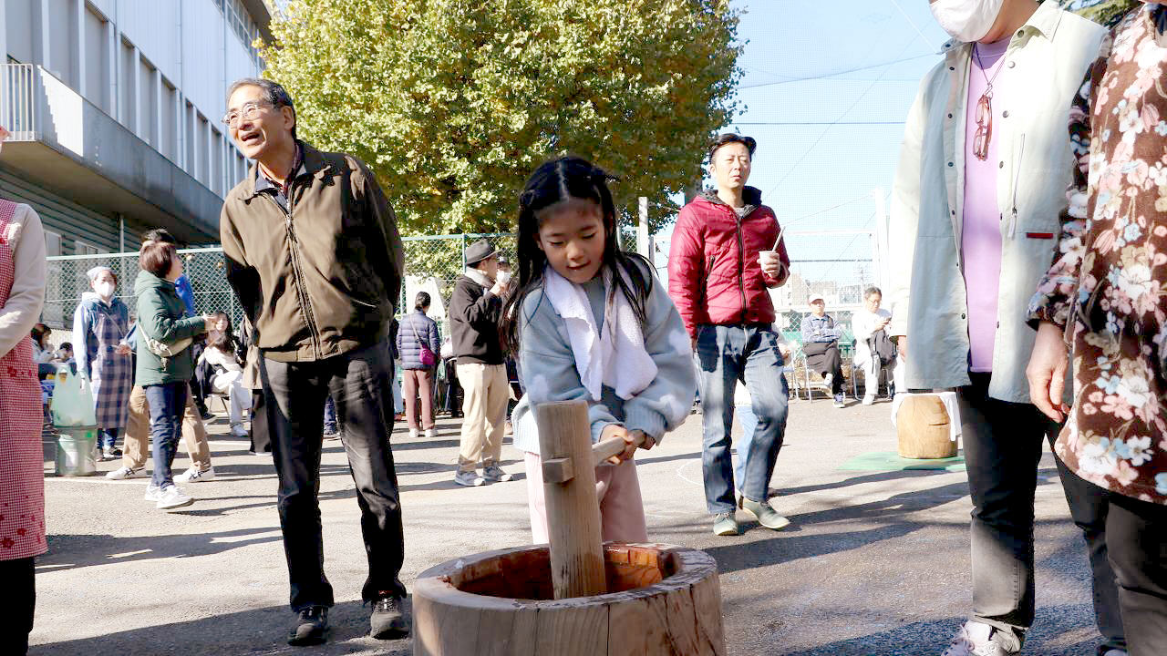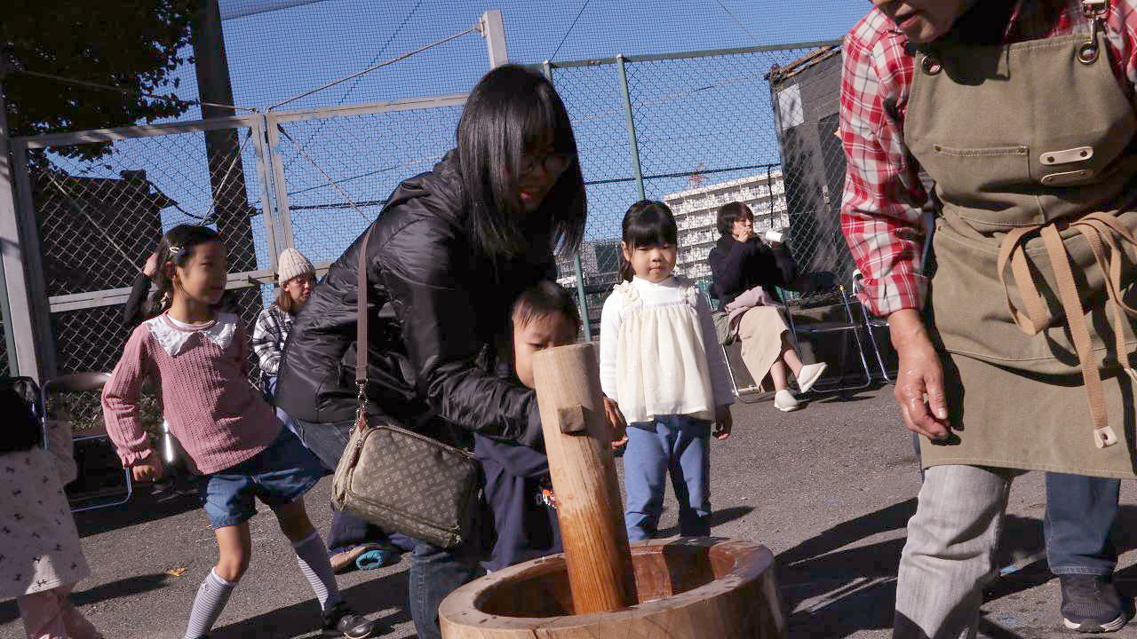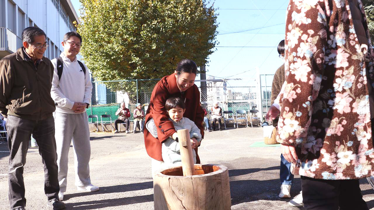 年末恒例のもちつき大会で、 元気におもちをついて、 つきたてのお餅を是非味わってくだ