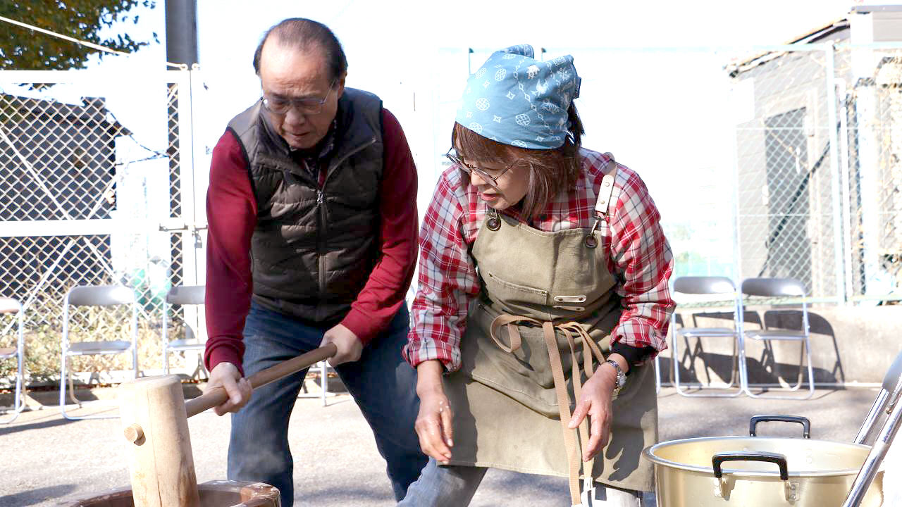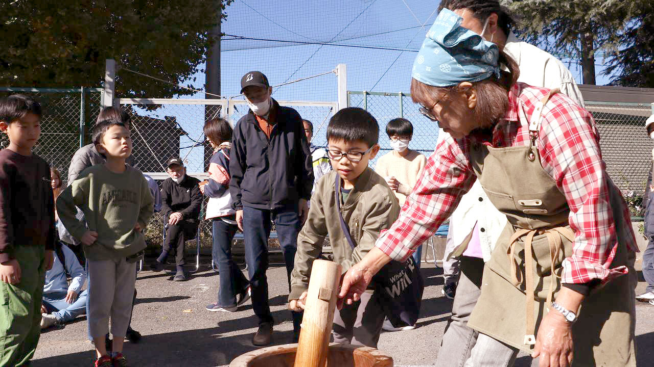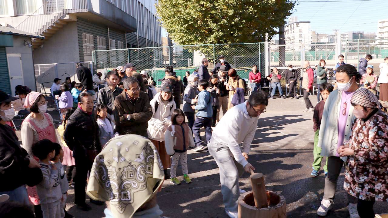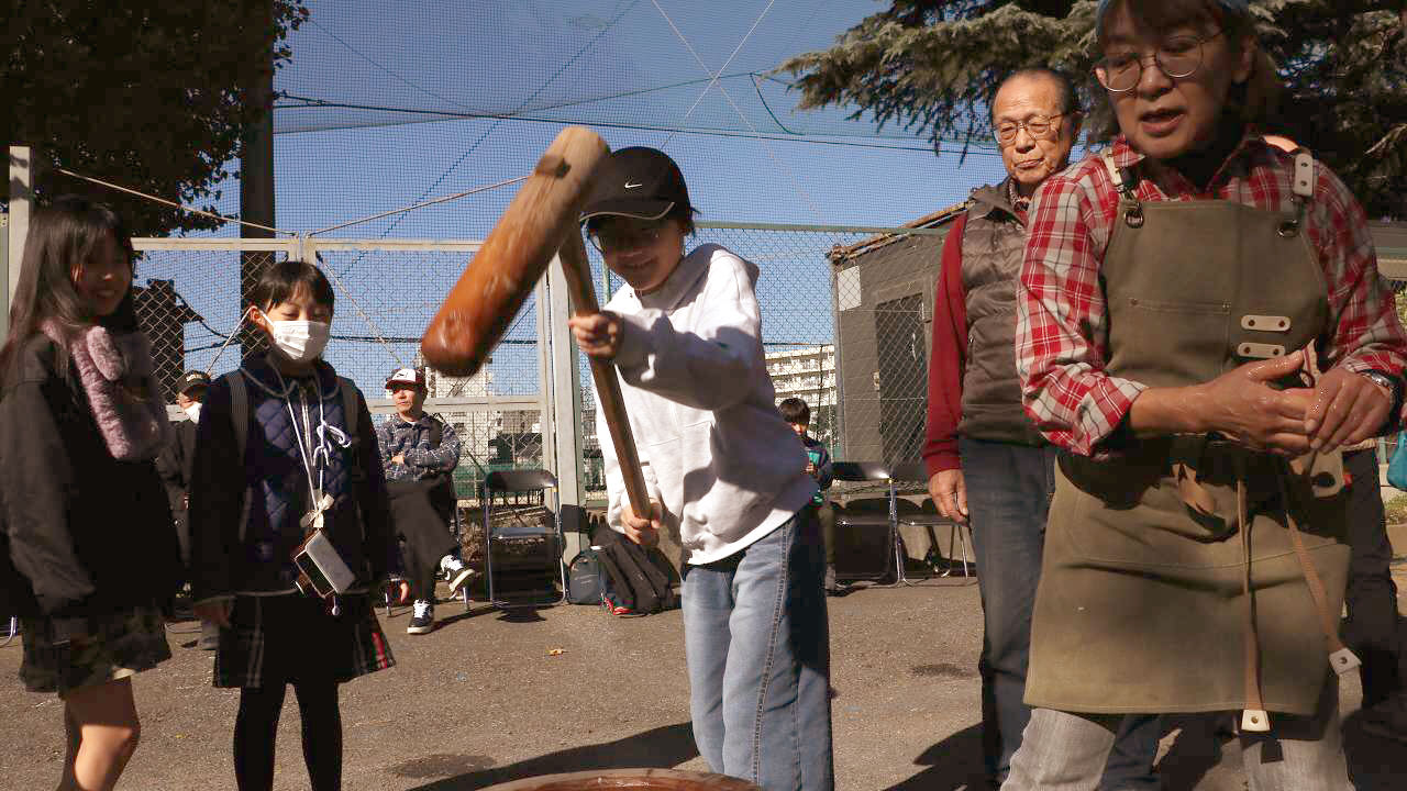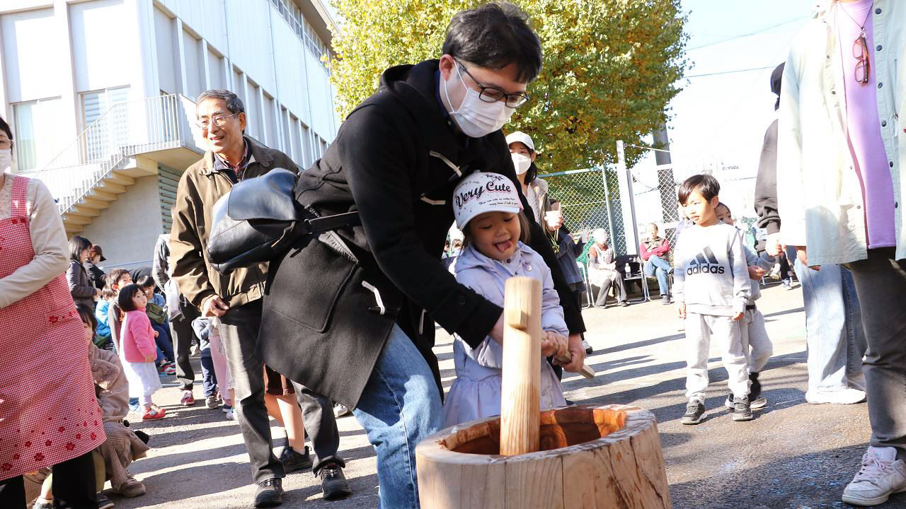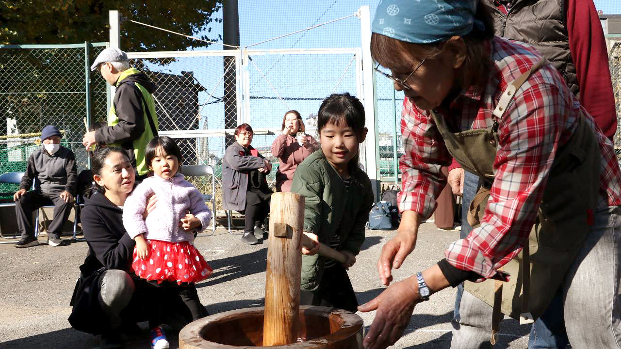 年末恒例のもちつき大会で、 元気におもちをついて、 つきたてのお餅を是非味わってくだ