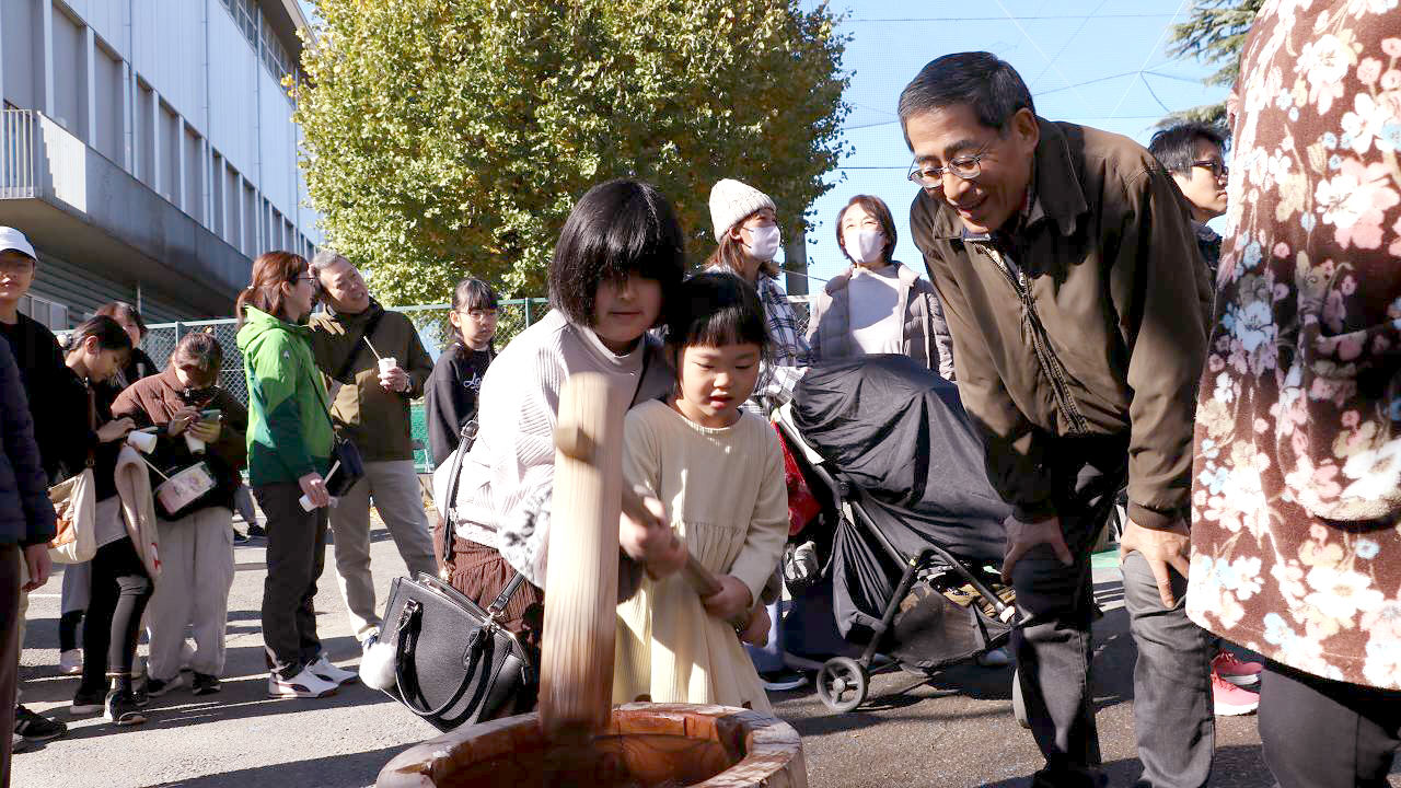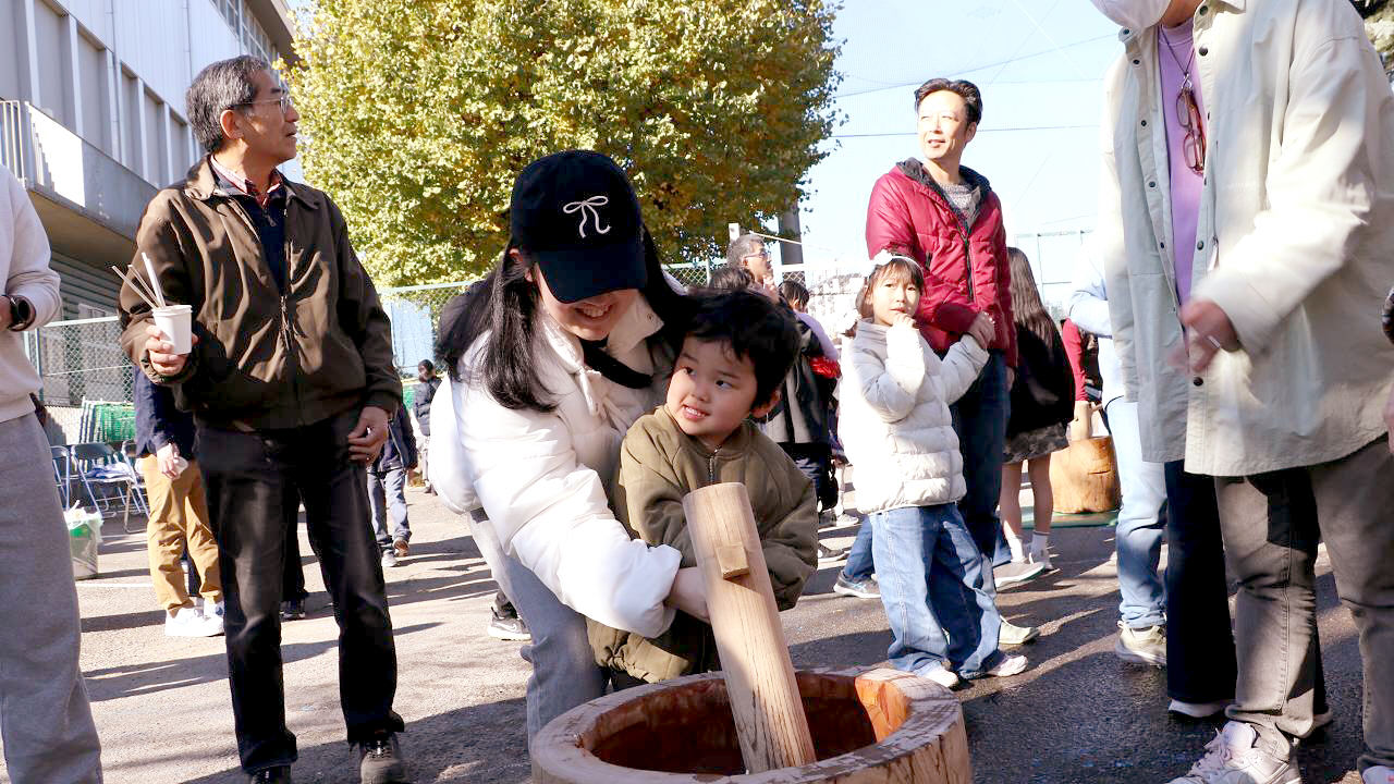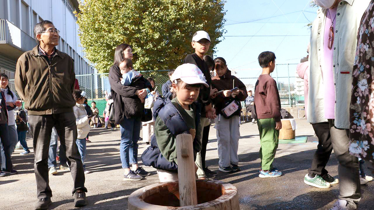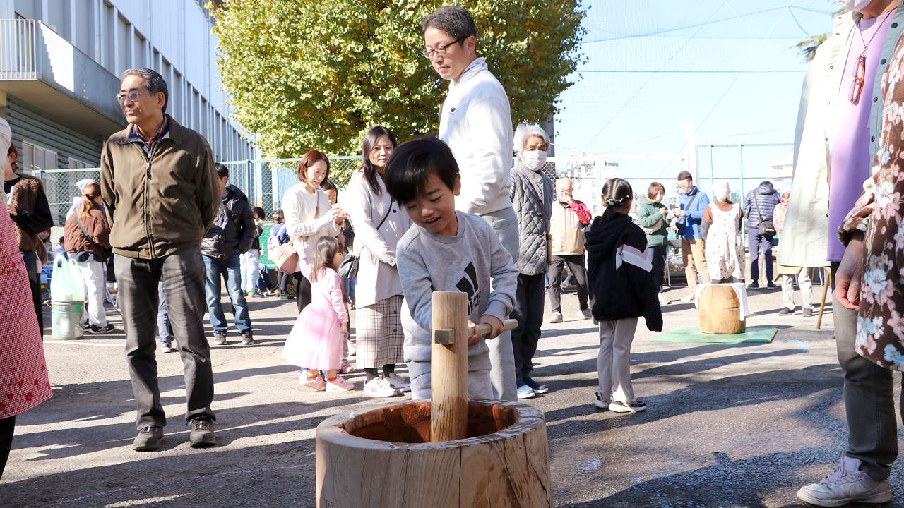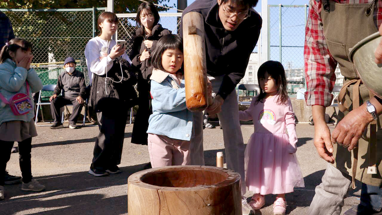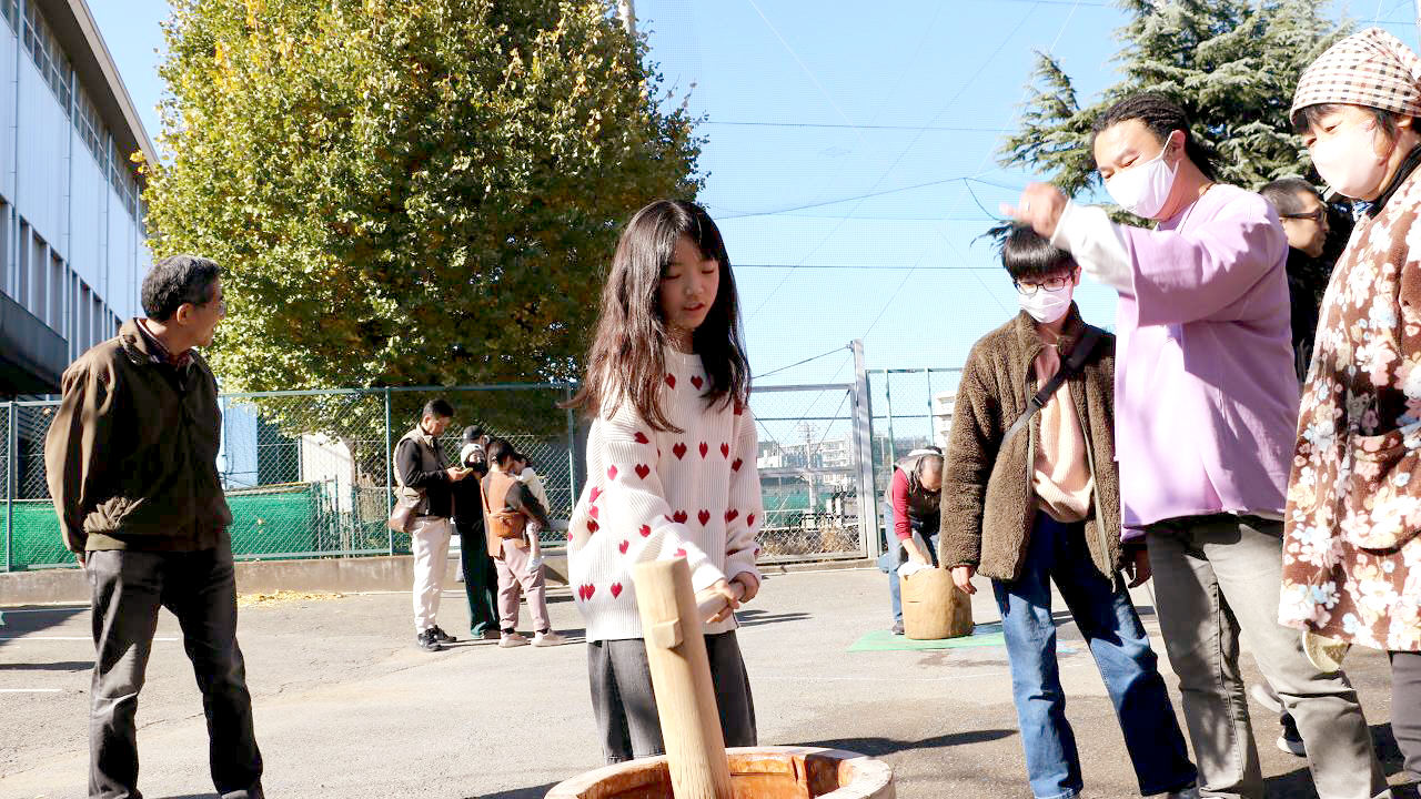 年末恒例のもちつき大会で、 元気におもちをついて、 つきたてのお餅を是非味わってくだ