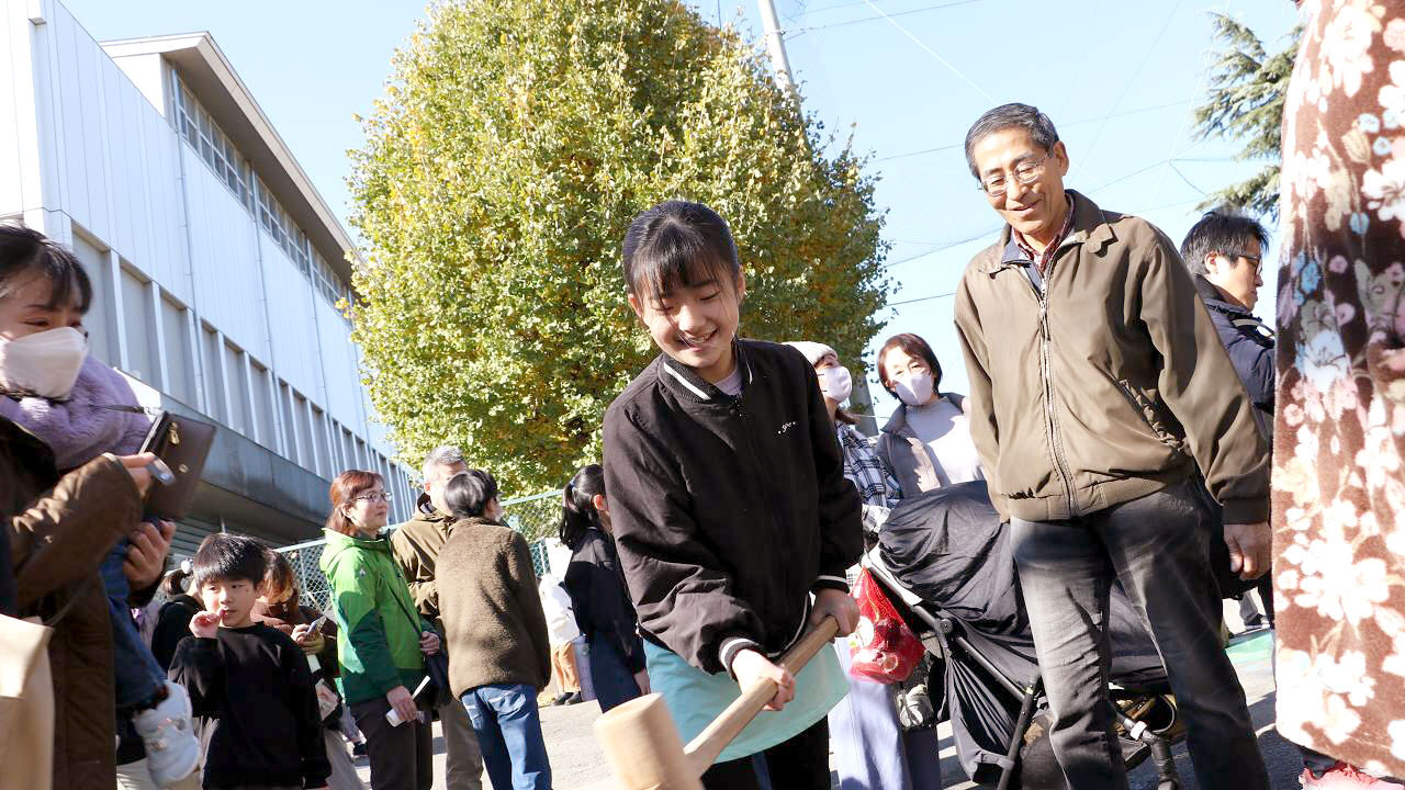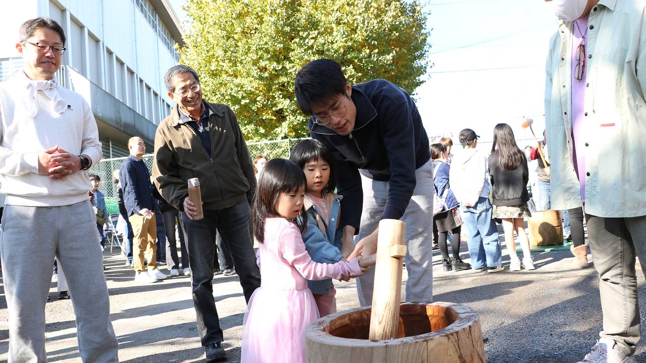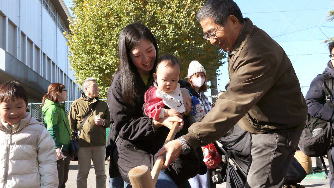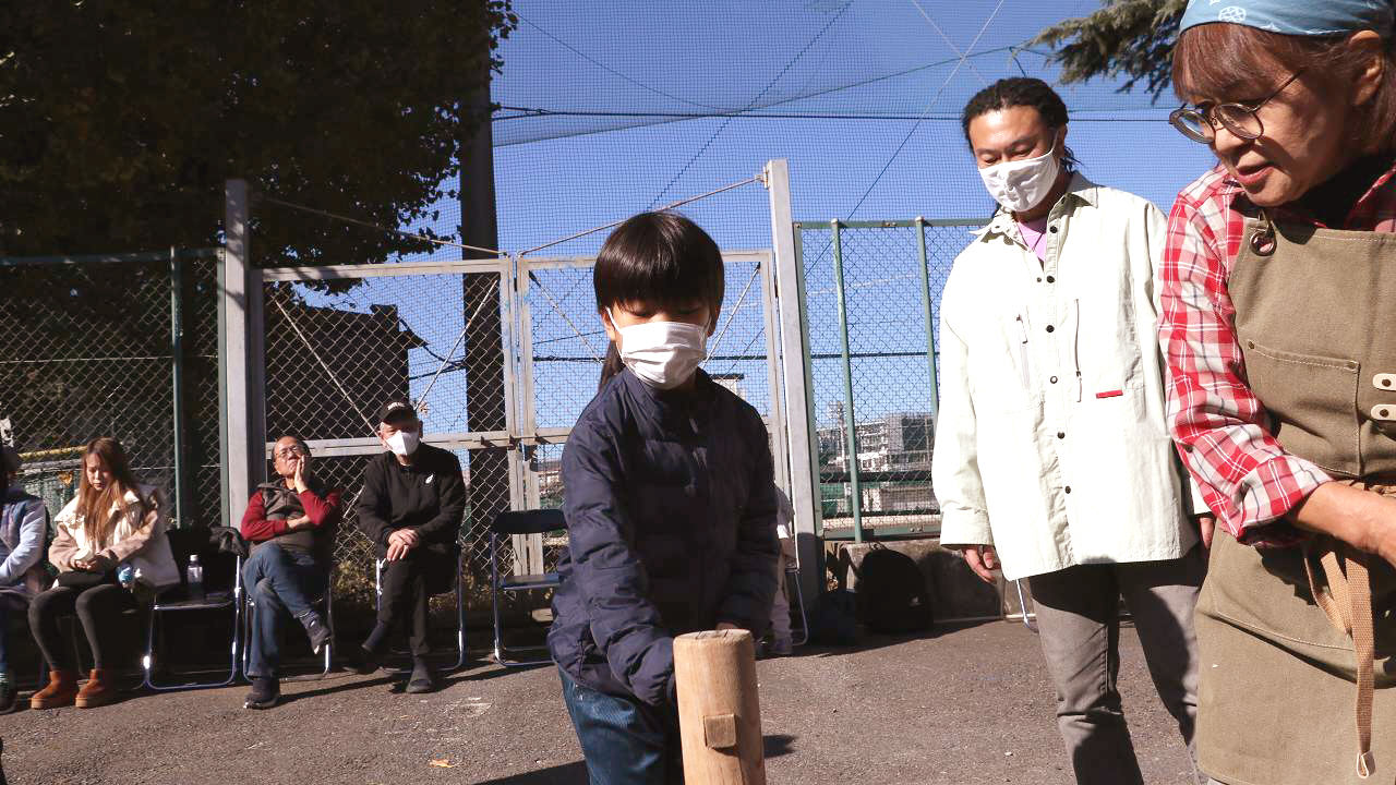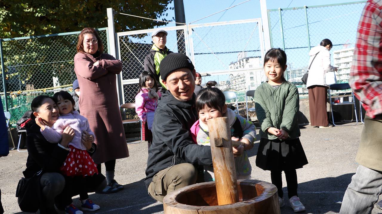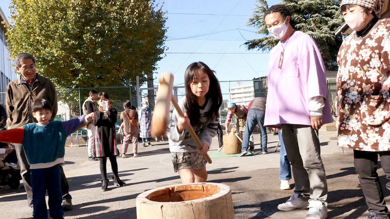 年末恒例のもちつき大会で、 元気におもちをついて、 つきたてのお餅を是非味わってくだ