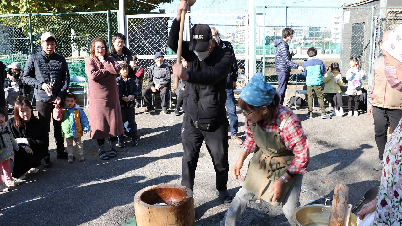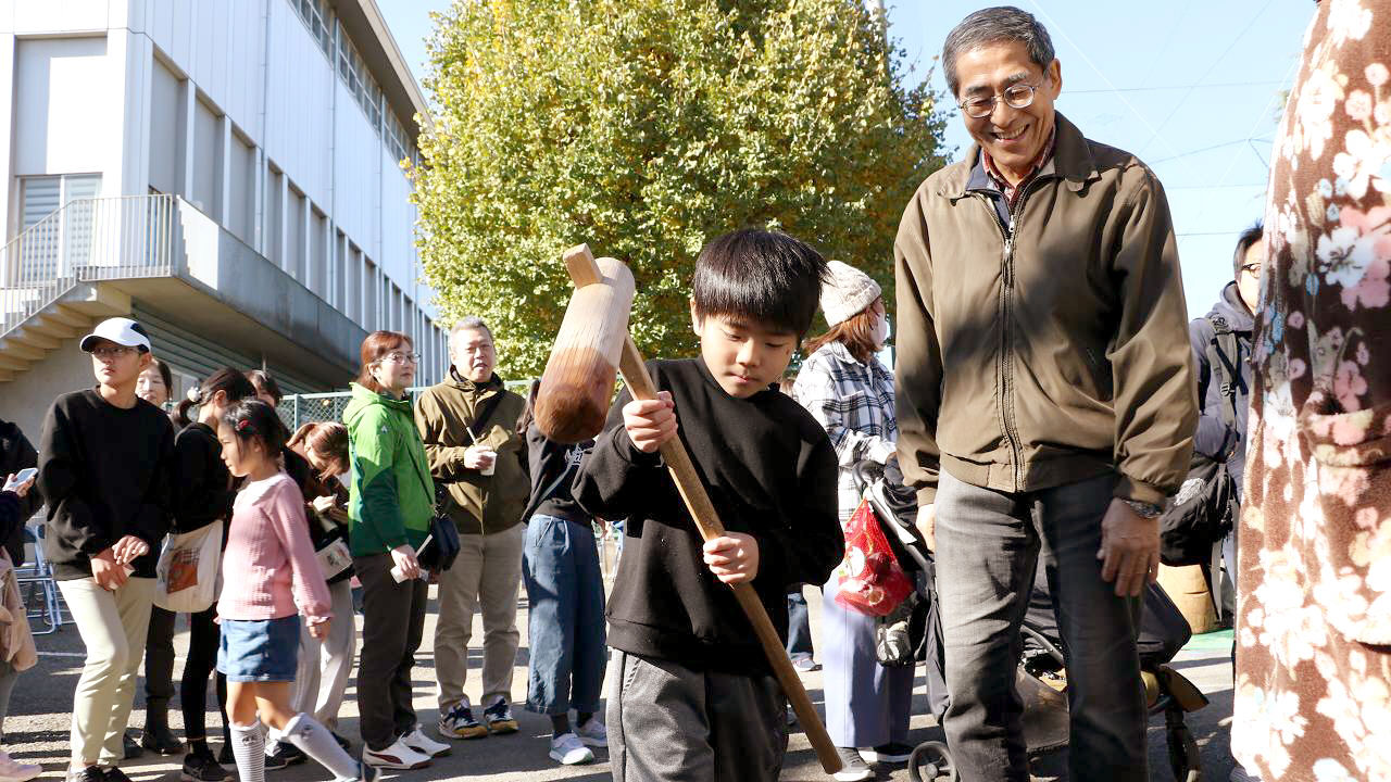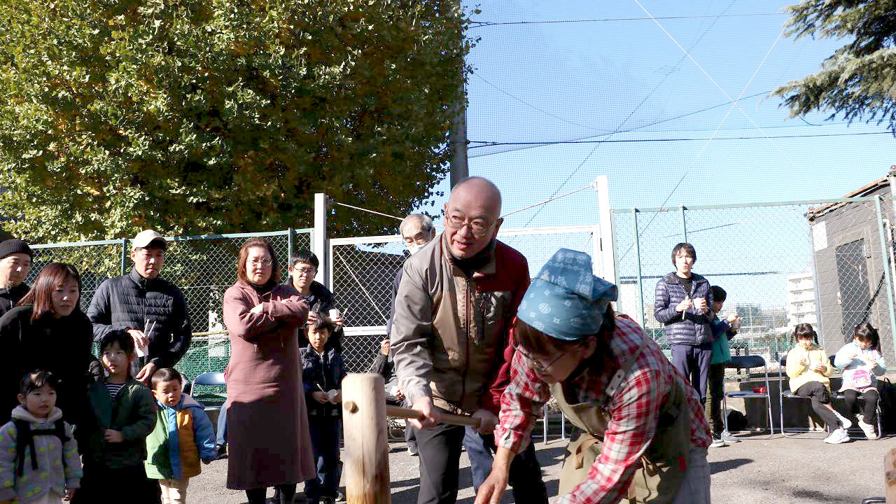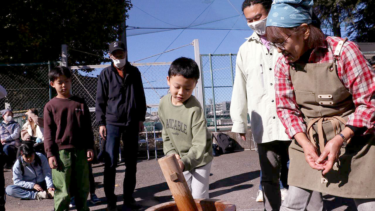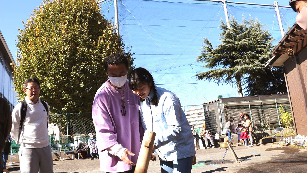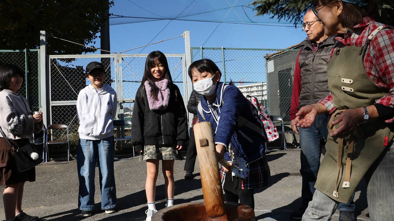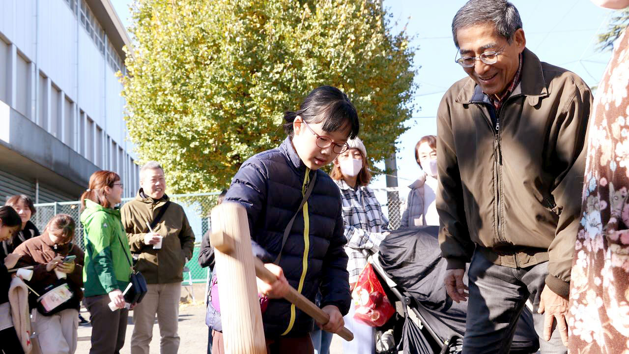 年末恒例のもちつき大会で、 元気におもちをついて、 つきたてのお餅を是非味わってくだ