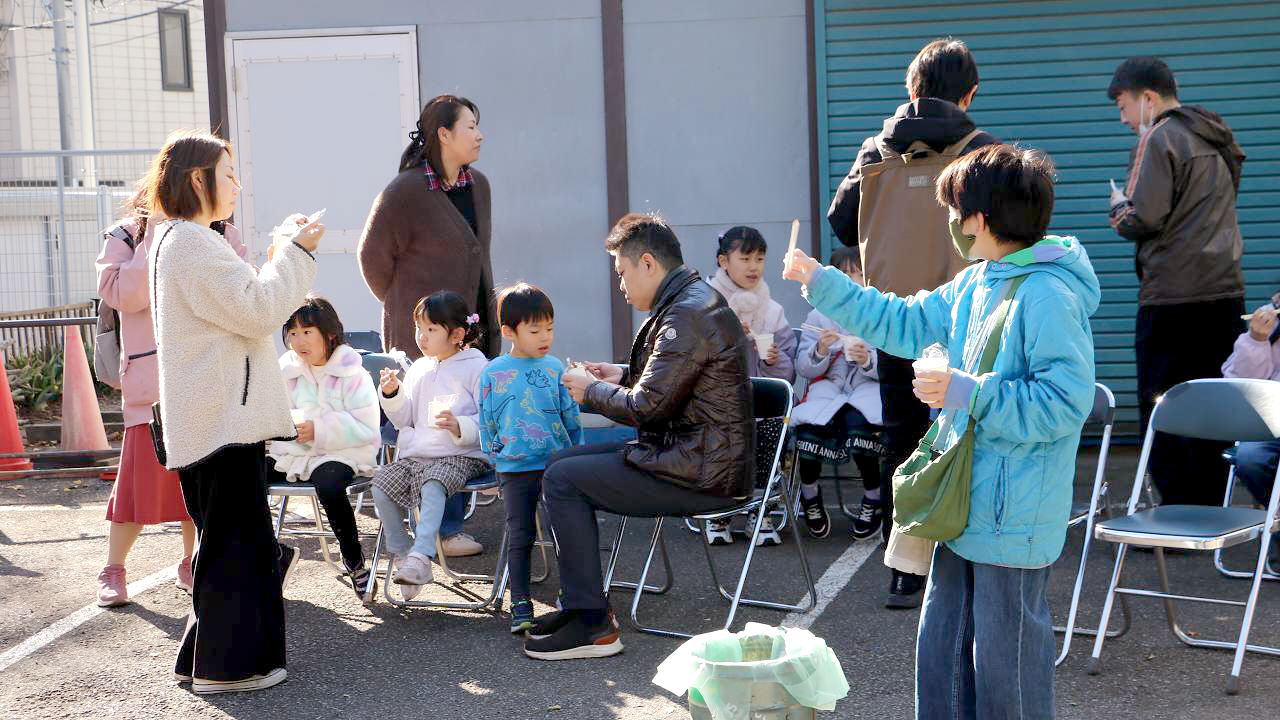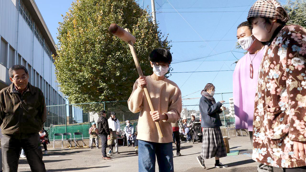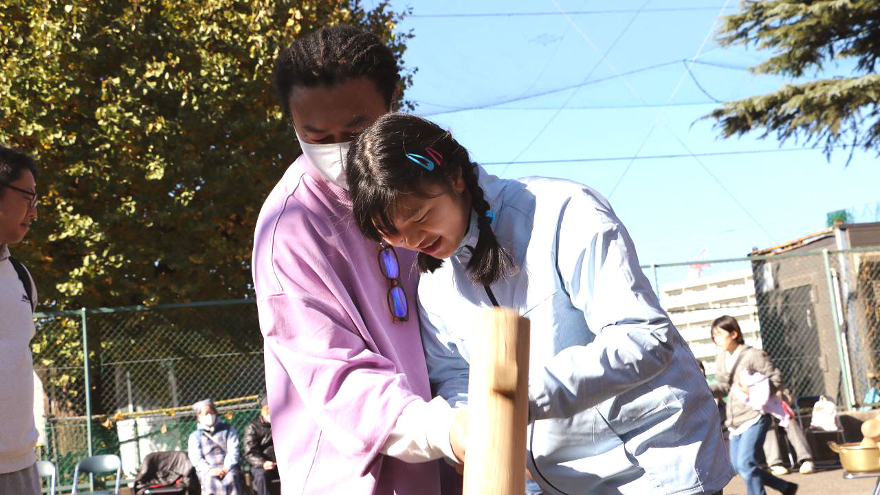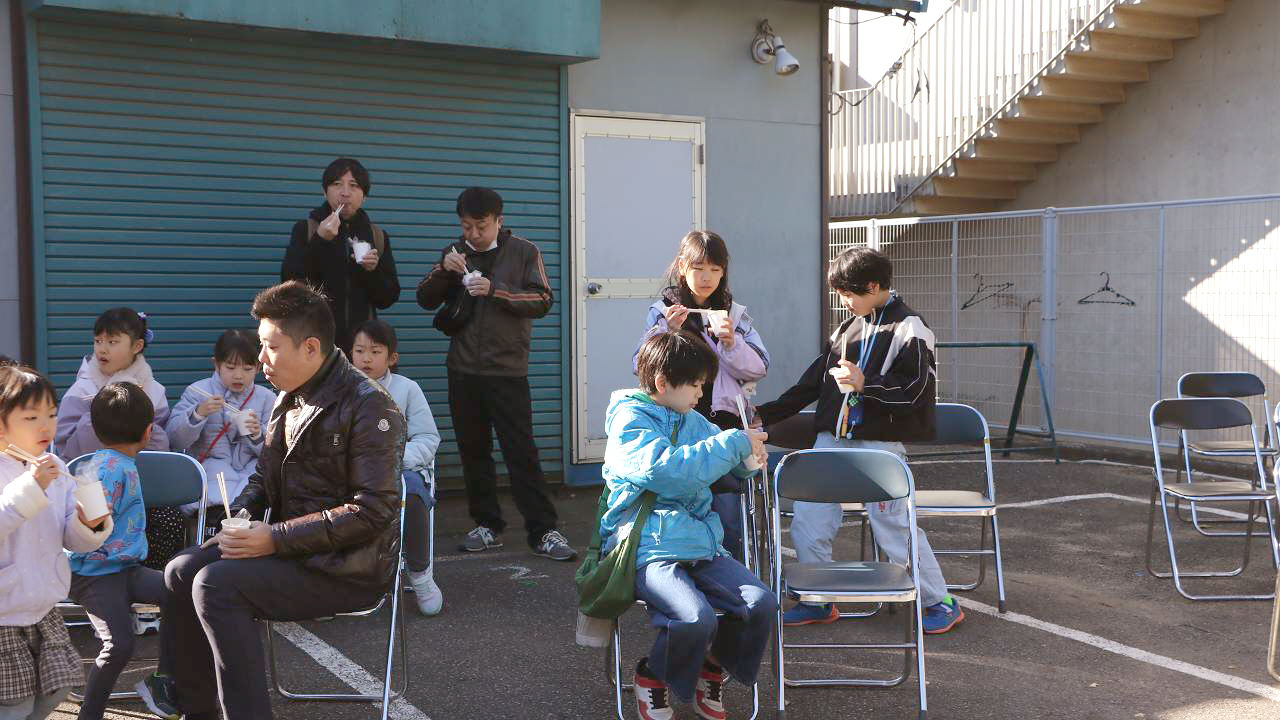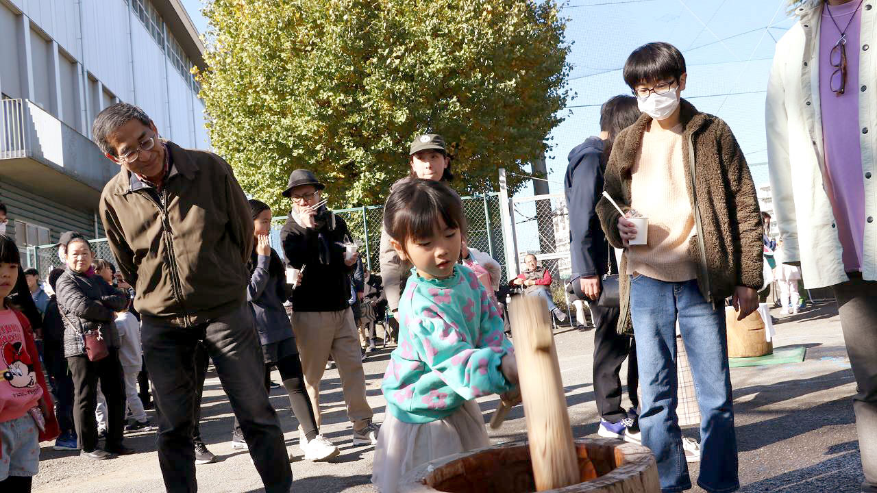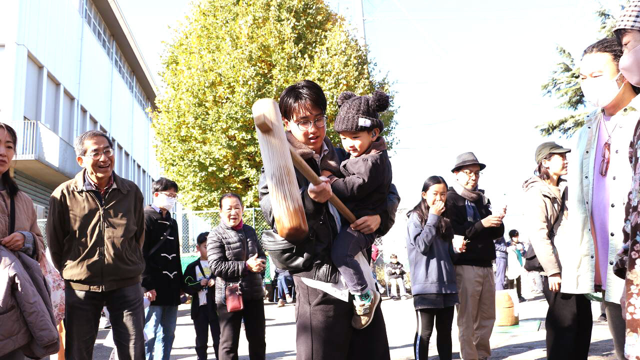 年末恒例のもちつき大会で、 元気におもちをついて、 つきたてのお餅を是非味わってくだ