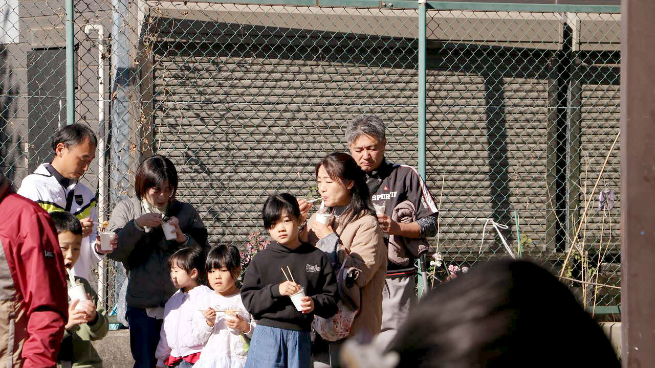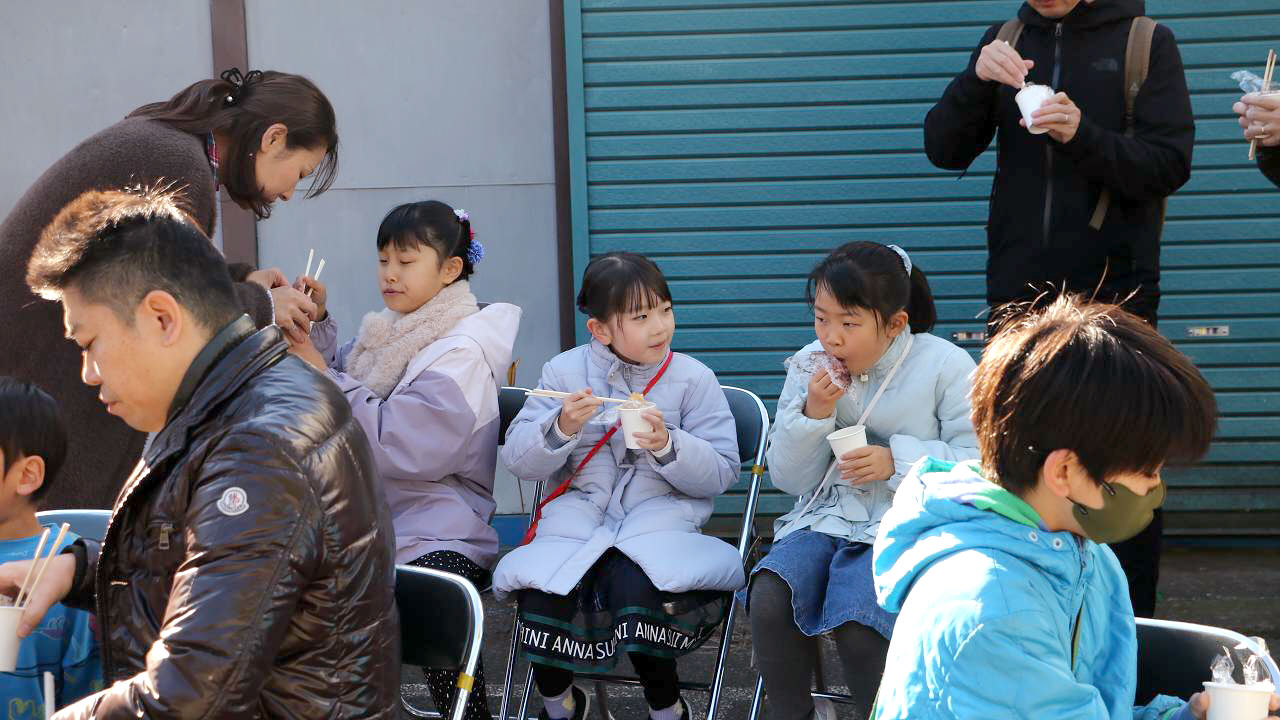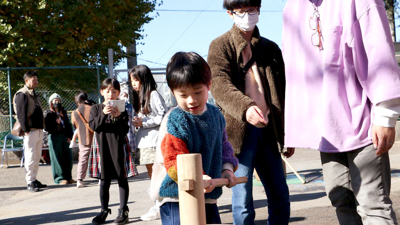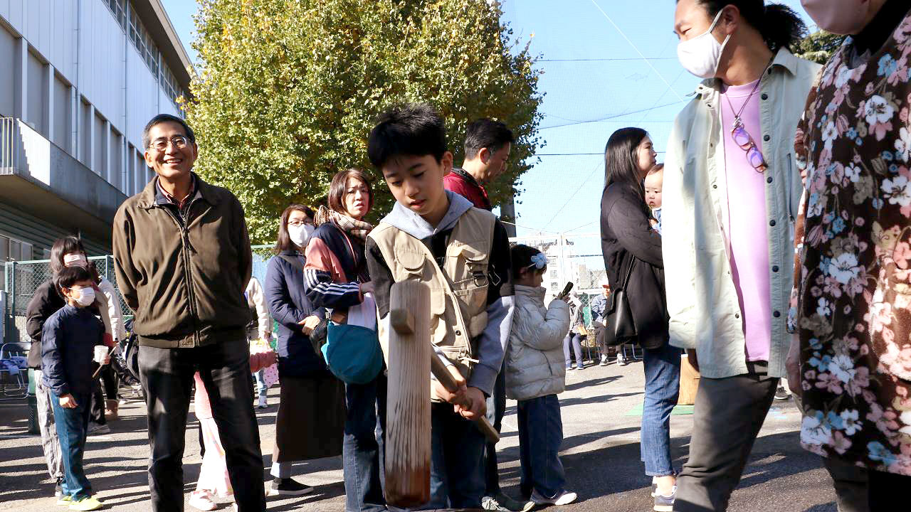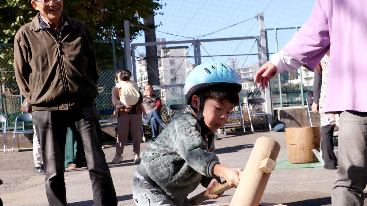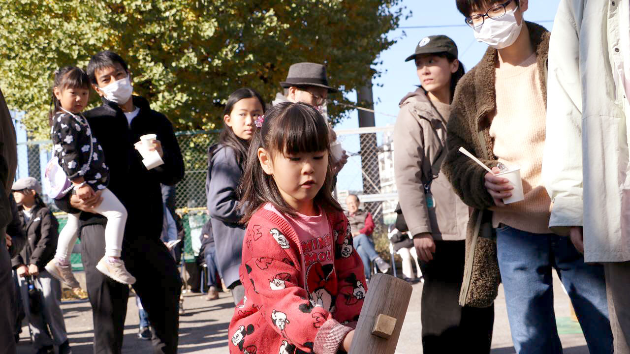 年末恒例のもちつき大会で、 元気におもちをついて、 つきたてのお餅を是非味わってくだ