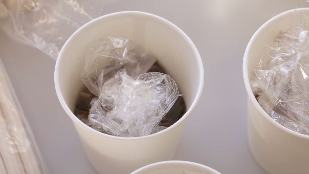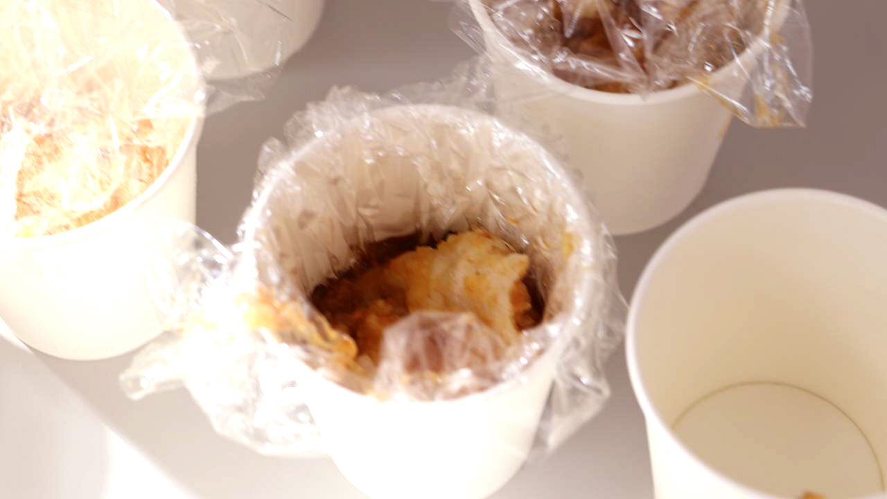 11 月 16 日、社会福祉協議会松波地区部会の方々に教わり、ポリ袋を使った「パッククッキング」をしました。メニューは、ご飯、豚丼の具、オムレツ ( チーズ入り )、カスタードクリームです。温かい丼ものとふわふわのオムレツは、災害時、空腹を満たしてくれて元気が出ますね。さらに甘いカスタードクリームがあったらホッとしませんか?