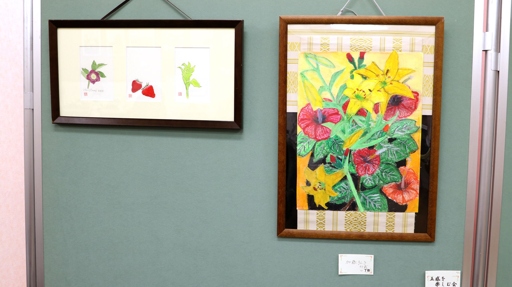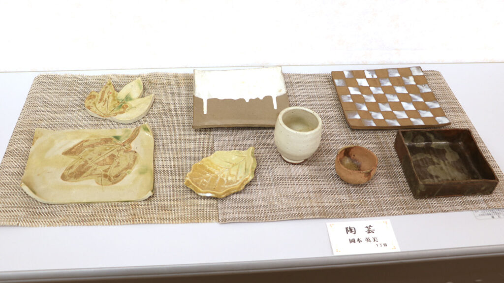 編み物、キルト、手芸、絵画、絵手紙、書、句、詩歌、写真、木彫り、押し花、生花、