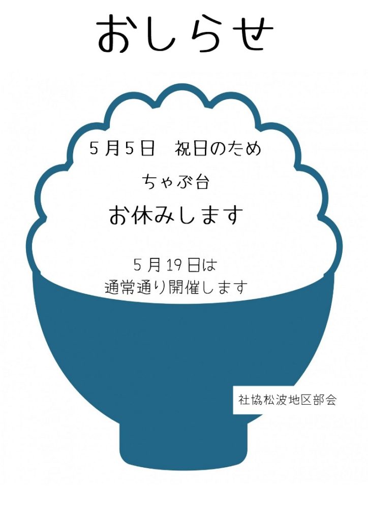 2024年5月3日のちゃぶ台は祝日によりお休みです